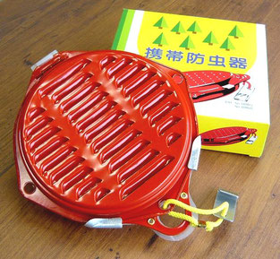 ベルトにつけて携帯でき、予備の線香も収納できます。(防虫器1つにつき1枚のスペア線香付き)